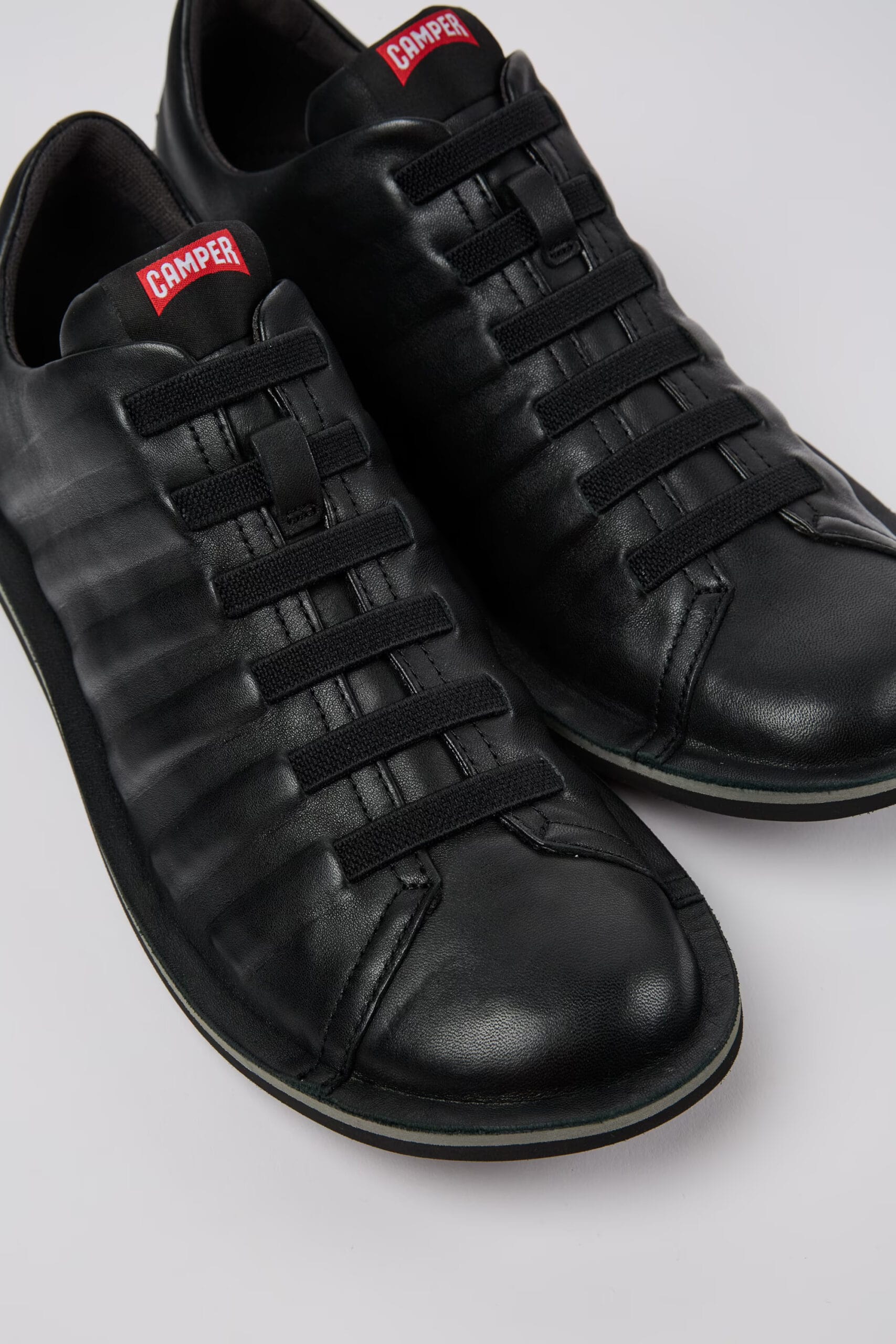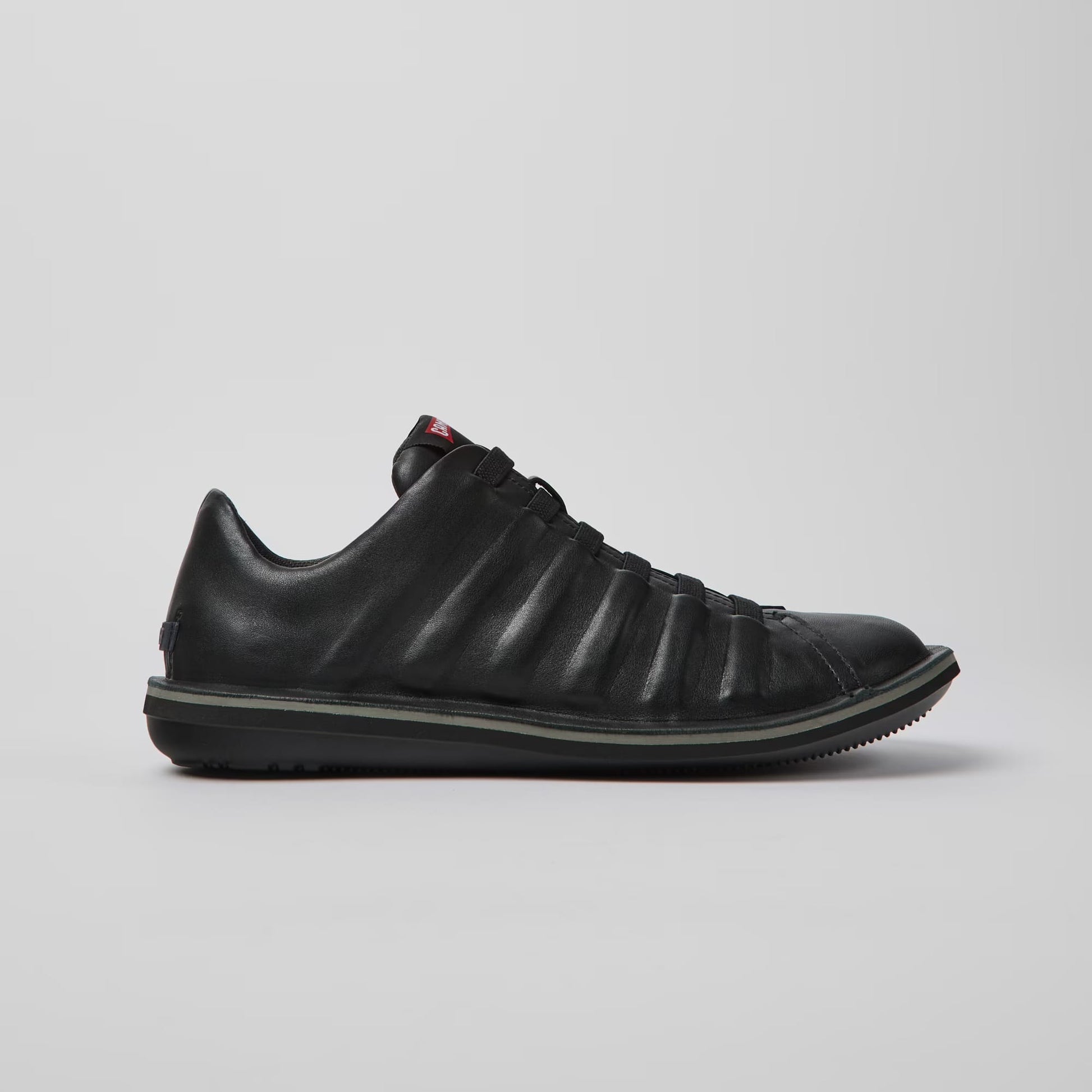 Black lightweight shoe for men. Full-grain leather and elastic laces. A Camper Icon that evolves with every season, our Beetle men's shoes are lightweight and flexible, with a sealed construction that combines an anatomic shape with original design. Our shoes are made with carefully selected, premium materials.