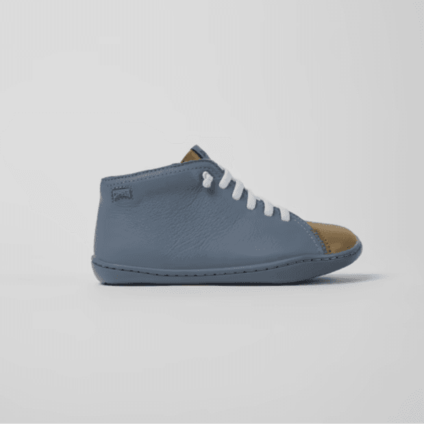 Multicolor leather kids' ankle boots with elastic laces and rubber outsoles (20% recycled). In 1988, we challenged the idea that shoes should be identical, designing a mismatched pair with asymmetric details ? and our iconic TWINS was born.