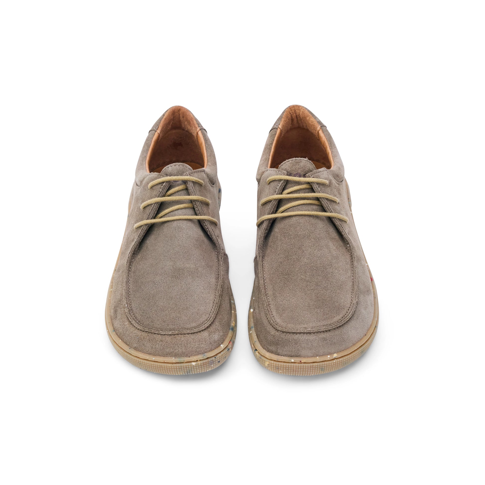 I am Fago - A loafer-inspired shoe with a barefoot shape, and a square toe box for natural comfort and toe freedom. Set on a recycled-based sole, I offer space to breathe without compromising classic derby style. Crafted in premium suede leather with refined stitching, a three-eyelet facing, and leather lining, I transition effortlessly from casual to formal.