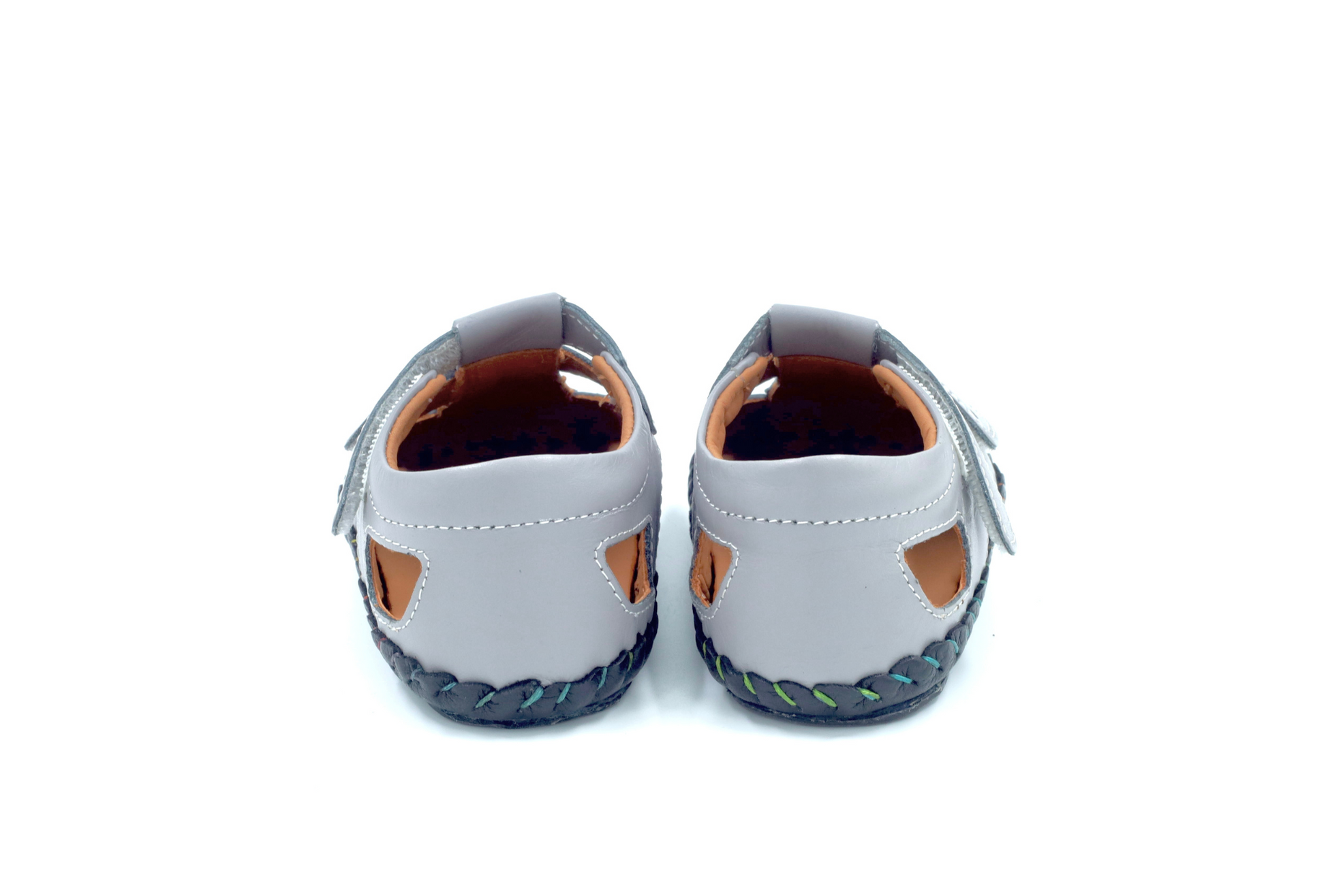 Little Sanderling – First Sandals for Confident First Steps! Little Sanderling is our softest sandal, thoughtfully designed for toddlers who are just starting to explore the world on their own two feet. Based on our popular Sanderling style, this version features a super flexible leather sole with a thin rubber layer for just the right amount of grip – perfect for those wobbly first steps on warm summer days. The closed-toe front helps protect little toes during outdoor play, while the wide toe box allows natural spreading and healthy foot development. Two soft leather straps – one at the ankle, one across the toes – are fully adjustable, ensuring a gentle but secure fit on all types of little feet. If you're looking for a first summer sandal that’s comfortable, protective, and truly barefoot, Little Sanderling is a wonderful choice for your toddler’s first adventures. 100% barefoot: Natural foot shape: The design mirrors the anatomical shape of a child’s foot, providing the necessary freedom for toes to spread naturally. Thin and flexible: The 2.5 mm thin and flexible rubber sole allows toddlers to feel the ground beneath their feet, fostering a natural connection to their environment and strengthening foot muscles. Zero drop: With no heel lift, the flat sole promotes a natural, upright posture, enhancing balance and helping prevent knee, hip, or back strain. Features: Natural leather upper Flexible leather outsole with anti-slip rubber base for traction Semi veg-tan leather lining for breathability Wide toe box for natural toe splay 2 hook-and-loop fasteners for easy adjustment and secure fit Zero drop for healthy foot development