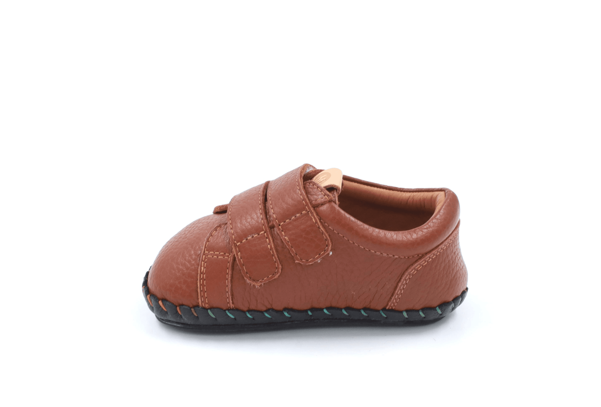 Little Woodpecker — our new first-walker sneakers, specially designed for the spring-summer-autumn season. Built with the same soft and flexible leather outsole as our beloved Skylark 2, these sneakers ensure comfort and freedom of movement for little feet taking their first steps. The thin rubber base promotes natural movement, letting children explore the world around them with ease. Crafted from natural leather, Little Woodpecker sneakers are treated with a water-repellent finish, making them a perfect choice for sunny spring days and cloudy summer outings. With a wider toe-box that provides extra space for growing toes to spread naturally, they offer the optimal fit for healthy foot development. Secured with two adjustable velcro straps, they guarantee a snug and comfortable fit, even during the most active playtimes. These sneakers are a smaller version of our new Woodpecker model, ensuring the same great design for younger and older kids alike. They are 100% barefoot: Natural foot shape: The design mirrors the anatomical shape of a child’s foot, providing the necessary freedom for toes to spread naturally. Thin and flexible: The 2.5 mm thin and flexible rubber sole allows toddlers to feel the ground beneath their feet, fostering a natural connection to their environment and strengthening foot muscles. Zero drop: With no heel lift, the flat sole promotes a natural, upright posture, enhancing balance and helping prevent knee, hip, or back strain. Features: Natural water-repellent leather upper Flexible leather outsole with anti-slip rubber base for traction Semi veg-tan leather lining for breathability Wide toe box for natural toe splay 2 hook-and-loop fasteners for easy adjustment and secure fit Zero drop for healthy foot development