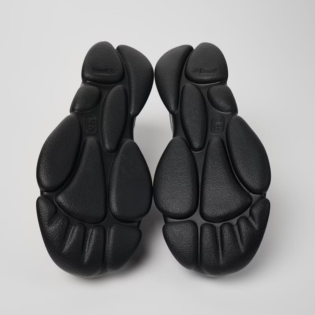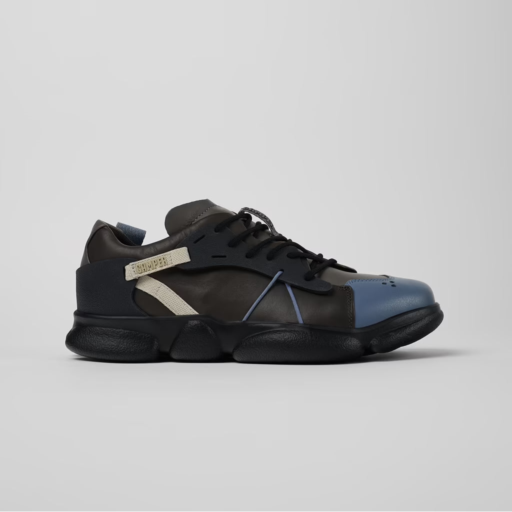 Multicolored leather and textile men's sneakers with water saving and non-dyed leather details, OrthoLite Recycled removable footbeds and XL EXTRALIGHT Organix 3.0 outsoles (30% bio-circular compounds). In 1988, we challenged the idea that shoes should be identical, designing a mismatched pair with asymmetric details and our iconic TWINS was born.