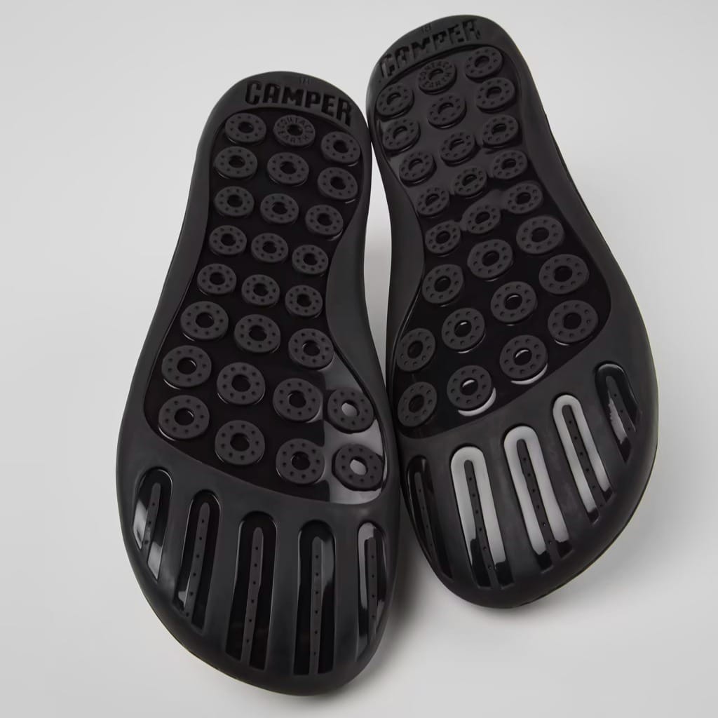 Gray leather women's shoes with elastic laces, EVA footbeds, and TPU outsoles. A Camper Icon that evolves with every season. Peu is functional simplicity inspired by walking barefoot. It is 360-degree stitched and built with a Strobel construction technique, guaranteeing unmatched flex and durability under any conditions. Upper 100% Calfskin Color Gray Outsole/Features 80% TPU, 20% Recycled TPU Insole - EVA Footbed Lining 100% Recycled Polyester
