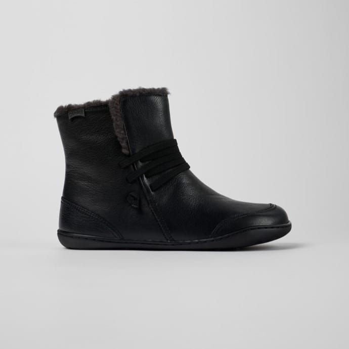 Black leather women's ankle boots with TPU outsoles (20% recycled). A Camper Icon that evolves with every season. Peu is functional simplicity inspired by walking barefoot. It is 360-degree stitched and built with a Strobel construction technique, guaranteeing unmatched flex and durability under any conditions. Our shoes are made with carefully selected, premium materials. The use of the right shoe care products will ensure these styles are protected and will last for a long time. 1. Remove dirt and grime with a soft cloth. 2. Protect leather from dirt and humidity with our Protect & Care Spray. 3. Clean and moisturize leather with our Clean & Care Lotion. 4. For extra protection, apply our Nanopro Waterproofing Spray. This product is exclusively for sale in our retail locations. Find a nearby store Shop locator 5. Polish leather with a cloth. Upper Calfskin (Leather Working Group Certified) Color Black Outsole/Features 80% TPU / 20% recycled TPU Lining 96% Textile (80% Wool, 20% TENCEL? Lyocell), 4% Pigskin