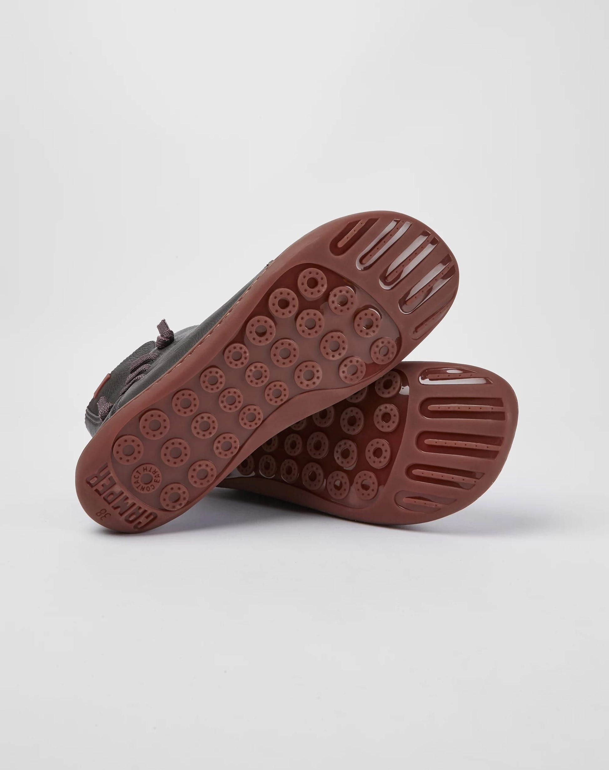 Dark grey leather women's ankle boots with 20% recycled TPU outsoles. A Camper Icon that evolves with every season. Peu is functional simplicity inspired by walking barefoot. It is 360-degree stitched and built with a Strobel construction technique, guaranteeing unmatched flex and durability under any conditions. Our shoes are made with carefully selected, premium materials. The use of the right shoe care products will ensure these styles are protected and will last for a long time. 1. Remove dirt and grime with a soft cloth. 2. Protect leather from dirt and humidity with our Protect & Care Spray. 3. Clean and moisturize leather with our Clean & Care Lotion. 4. For extra protection, apply our Nanopro Waterproofing Spray. This product is exclusively for sale in our retail locations. Find a nearby store Shop locator 5. Nourish leather with our Shoe Cream. Apply a thin coat and allow a few minutes to dry. 6. Polish leather with a cloth. Upper Calfskin (Leather Working Group Certified) Color Dark grey Outsole/Features TPU with extraordinary grip (20% recycled) Zip closing for easy fit Lining 100% Textile (100% Recycled PET)