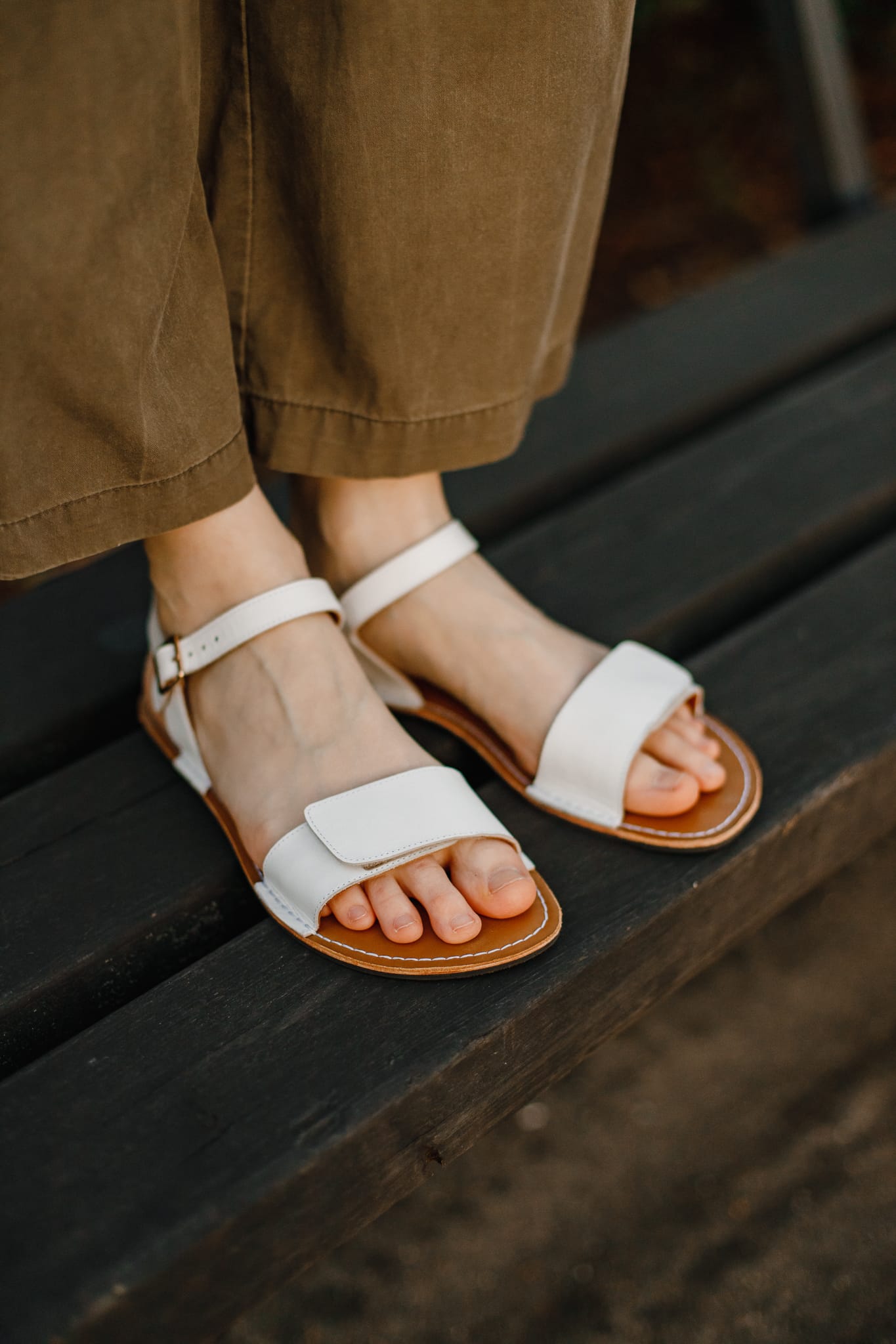 Natural leather fully barefoot sandals for women, who love freedom of movement with elegance. Buckle strap around the ankle and adjustable velcro strap over the toes allows it to fit perfectly for wide or narrow feet equally well. Nice, clean cut for the style fits nicely with every outfit - would it be a pair of jeans or long dress for the evening outing. Minimus sandals are made of natural non-toxic leather upper and insole, veg-tan soft lether interior , 2 mm rubber outsole. Packed in enviromentally friendly packaging.