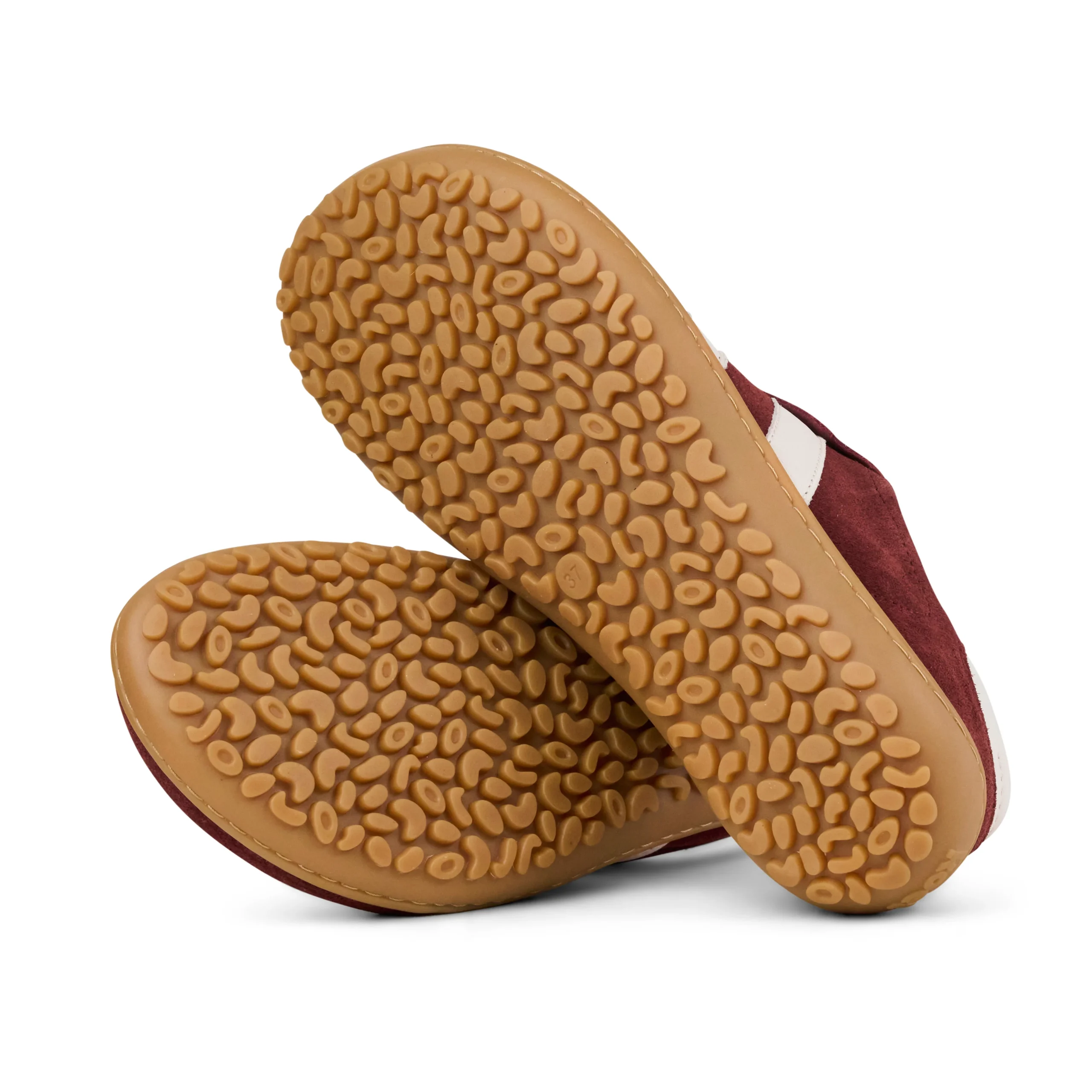 Step back into classic style with the Barefoot ILA sneakers Suede (off white & bordo). Inspired by the 80s, these barefoot sneakers combine a vintage aesthetic with natural barefoot freedom. Their dual-layer suede upper and white diagonal stripes create a timeless design that pairs well with both casual and sporty looks.